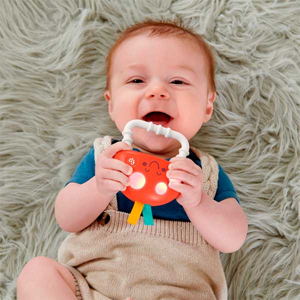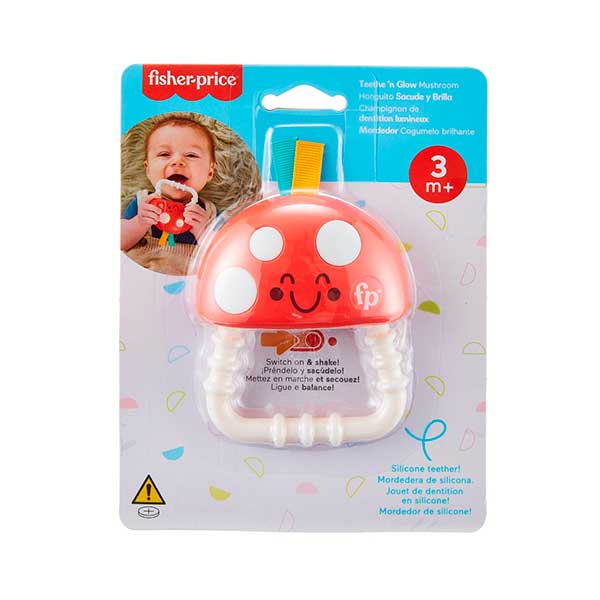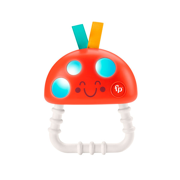 ¡Que comiencen los mordiscos! El hongo Teethe ‘n Glow de Fisher-Price® es una mordedera y un juguete muy divertido que se ilumina para deleitar los sentidos del bebé. Esta mordedera y sonaja 2 en 1 tiene una base 100 % de silicona y luces multicolores que brillan cuando el bebé la sacude. Agarrar y mover el juguete ayuda a fortalecer la destreza y la coordinación ojos-manos, mientras todas las texturas y las luces estimularán los sentidos táctiles y visuales del bebé.