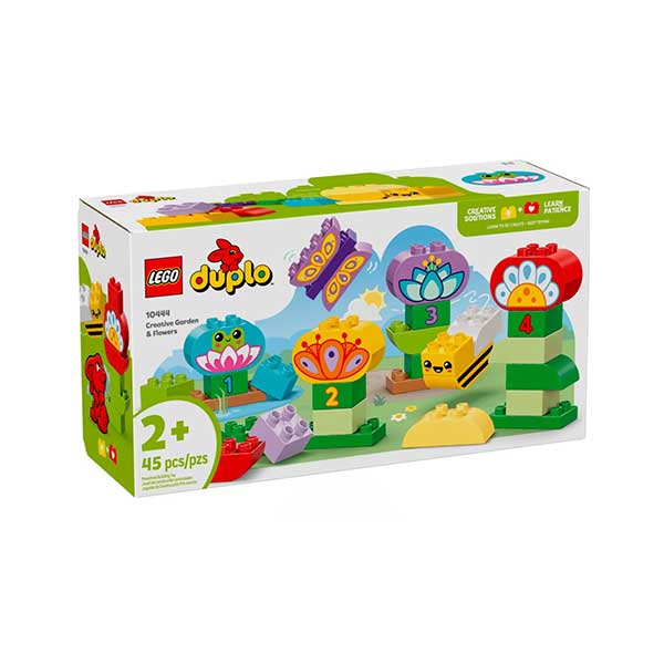 Ayuda a tu bebé a desarrollar sus habilidades motrices finas con el juguete para apilar Mi Ciudad LEGO® DUPLO® Jardín y Flores Creativas (10444), ¡y haz brotar su creatividad! Con 45 ladrillos para construir coloridas flores y simpáticos animales e insectos de juguete LEGO DUPLO, este set de construcción invita a los niños creativos a diseñar una escena de una belleza en constante cambio. Este juguete de aprendizaje estimula la imaginación de los preescolares ayudándolos a recrear el mundo que ven cada día. Cuando usan los 45 ladrillos para construir el jardín de juguete, los bebés empiezan a reconocer los números, aprenden los colores y comienzan a mejorar su destreza lingüística y a perfeccionar sus habilidades motrices finas.