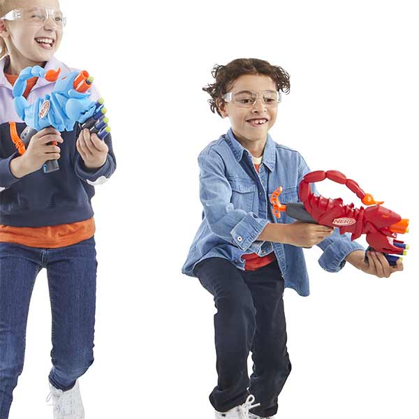 Pack Nerf Wild Venompack: diseñado para facilitar el juego a niños y niñas a partir de 6 años. Incluye 2 lanzadores ligeros y fáciles de sostener, con un diseño de escorpión y capacidad para 2 dardos cada uno. El sistema de carga frontal simplifica la recarga, y las palancas requieren mínima fuerza, ideal para los más pequeños. Incluye 20 dardos de espuma Nerf Elite. Perfecto para quienes se inician en las batallas de dardos Nerf. Se recomienda el uso de lentes (no incluidos).