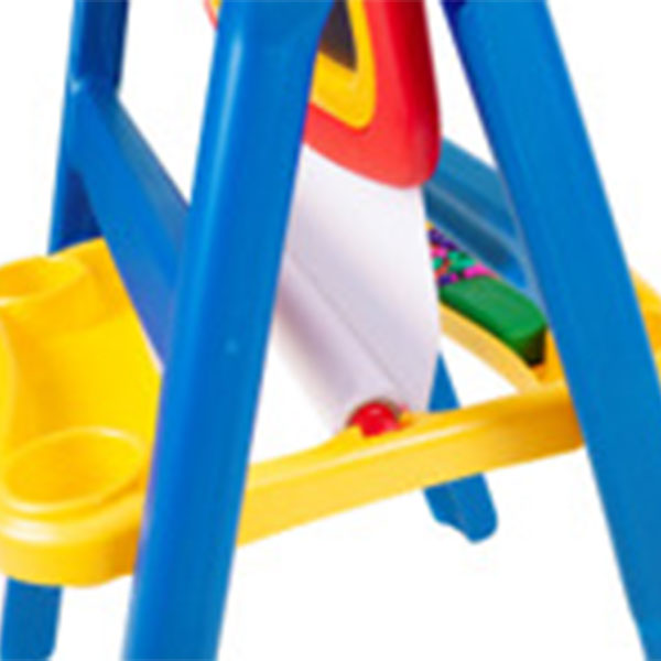 “Caballete Crayola Qwikflip de 2 caras con tablero giratorio 360°. Incluye pizarra magnética de borrado en seco y pizarra tradicional. Viene con 77 letras y números magnéticos, tizas de color y borrador. Ideal para estimular creatividad, motricidad y aprendizaje en niños.”