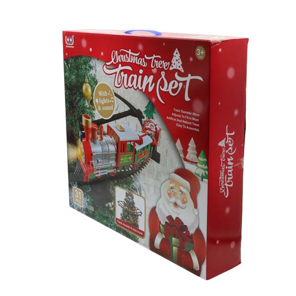 Set de tren mediano. Incluye tres vagones y una locomotora y los tramos de vía. Tiene luces y sonidos, funciona con baterías. No incluye baterías (Requiere 2 baterías AA). Edad recomendada para mayores de 3 años.