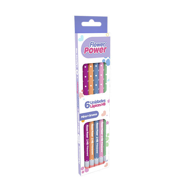 Lápices Flower Power, 6 unidades con hermosos diseños y colores vibrantes. Punta de 2 mm y cuerpo triangular para un trazo suave y fácil de borrar. 100% original de Primavera. ¡No pierdas la oportunidad de tenerlos, cómpralos ya!