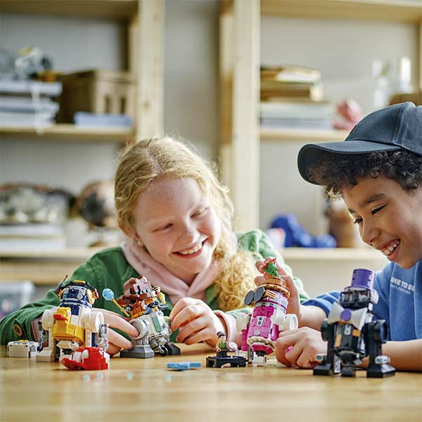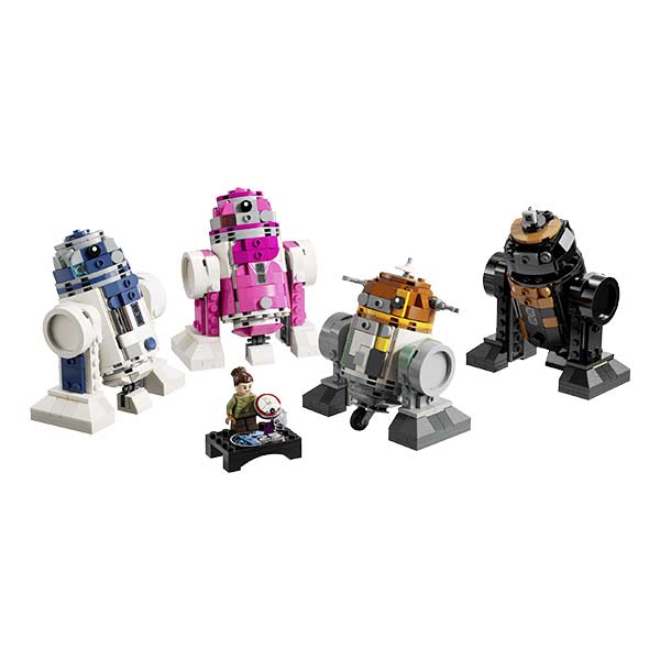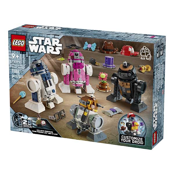 Construye tus propios R2-D2, Chopper (C1-10P), QT-KT y R5-J2 e inventa droides con el set LEGO® Star Wars™ Fábrica Creativa de Droides (75392). Una idea original de regalo para niños, niñas y fans a partir de los 9 años, este set de juguetes construibles inspirado en el universo Star Wars trae montones de accesorios para personalizar a los droides, como un pato, un sombrero de vaquero, un bigote, gafas, auriculares, 2 reactores y 2 cañones que disparan. ¡La cabeza giratoria y las piernas de cada personaje droide se pueden intercambiar para construir droides totalmente mezclados! Este kit para construir droides de Star Wars incluye instrucciones independientes para cada una de las 4 figuras LEGO de droides y sus accesorios, lo que permite a pequeños, familiares y amigos construir juntos como actividad de grupo divertida y creativa.