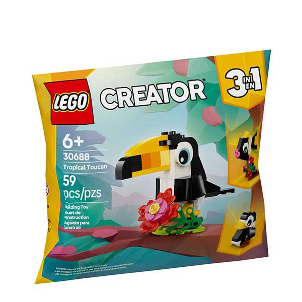 Este fantástico set 3en1 ofrece a los apasionados de los animales la oportunidad de construir el Tucán Tropical, con una flor, antes de convertirlo en un pez nadando entre corales o en un pingüino.