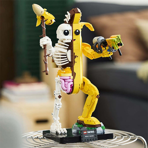 "Kit de construcción para adultos LEGO® Fortnite® Banano Pelado (77072): recrea el icónico personaje de Fortnite con este detallado set de construcción. Basado en el popular videojuego, este modelo de Banano Pelado, mitad plátano y mitad esqueleto, cuenta con brazos y muñecas móviles, y accesorios como el pico pelado, el lanzador de pintura y el mochilero petate de potasio. Ideal para los fans de Fortnite, este set es perfecto para exhibir y disfrutar de un divertido proyecto de construcción."