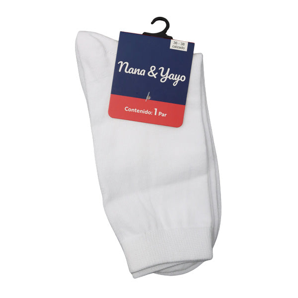 Medias escolares para niños en color blanco, de largo tradicional ideal para la escuela. Incluye 1 par, fabricadas en 100% algodón para asegurar suavidad y confort. Disponibles en talla 36-38."