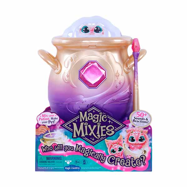 ¡Descubre la verdadera magia con el Caldero "Magic Pixies"! Quedarás asombrado cuando veas lo que emerge a través del vapor después de completar tu hechizo mágico. Combina los ingredientes mágicos y revuélvelos. Cuando la luz verde te indique que tu poción está lista, verás que has dado vida a tu nuevo amigo "Magic Mixie". Estos adorables peluches tienen más de 50 reacciones y sonidos, y interactúan con la varita mágica incluida en el set de juego. La figura electrónica incluye 3 baterías LR44, y el set de juego también viene con una batería recargable de litio de 2.96WH (no reemplazable) y un cable de carga USB. Recomendado para niños mayores de 5 años. Experimenta la magia como nunca antes."