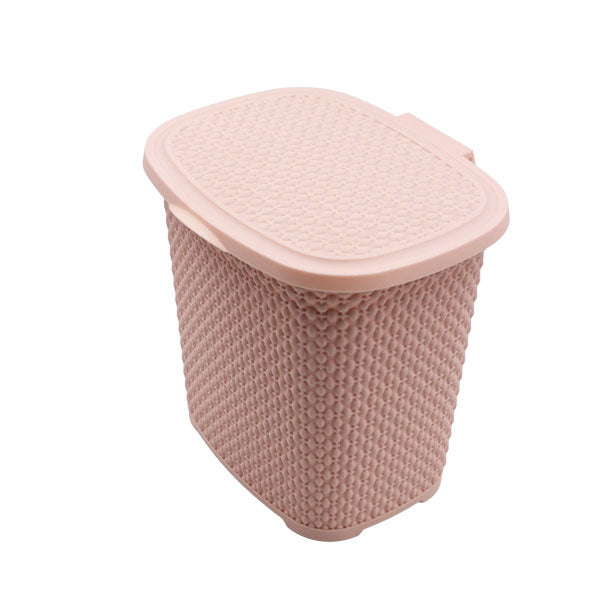Material: plástico. Colores disponibles: blanco, café, gris y beige. Capacidad: 6 litros. Medidas: 21x24,5x23,5cm. Cuenta con una tapa y agarraderas. Además de un diseño moderno y elegante.