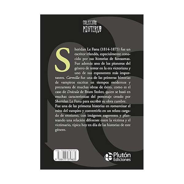 Publicada en el siglo XIX, Carmilla es una de las primeras historias modernas de vampiros, precursora de Drácula de Bram Stoker. Sheridan Le Fanu, maestro del terror victoriano, introduce un relato cargado de misterio, erotismo y tensión, donde el vampiro se presenta con una sensualidad inquietante, redefiniendo la relación entre víctima y victimario. Una obra fundamental para los amantes del horror gótico y las historias de vampiros.