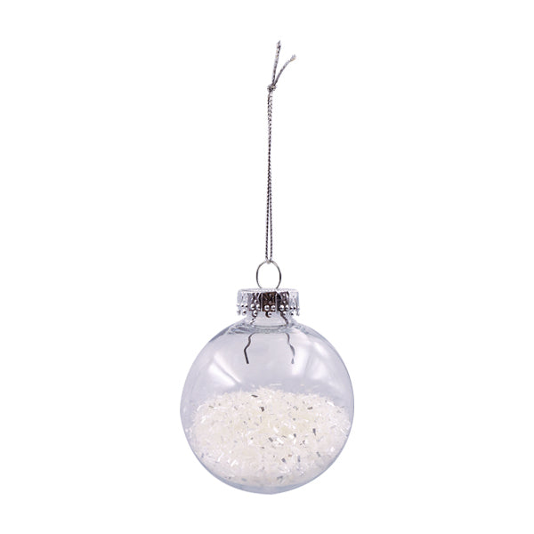 Perfecto para navidad cuenta con una tapa y una cuerda para colgarla fácilmente tu árbol de navidad para decorar. Ajuste perfecto para cualquier árbol de tamaño normal. Esferas para árbol con peso ligero que no doblan las ramas del árbol de navidad. Diseño trasparente con diamantina plateada y blanca, Tamaño 6cm.