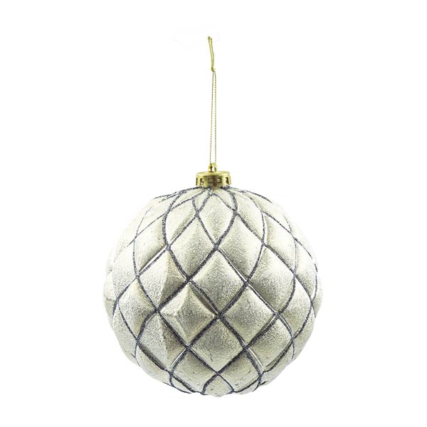Esferas de Navidad plateadas de 15 cm, diseño texturizado. Cada esfera incluye una tapa y una cuerda, facilitando su colgado en las puntas del árbol. Solo saca las esferas y cuélgalas para una decoración instantánea y elegante. Perfectas para añadir un toque sofisticado a tu árbol de Navidad.