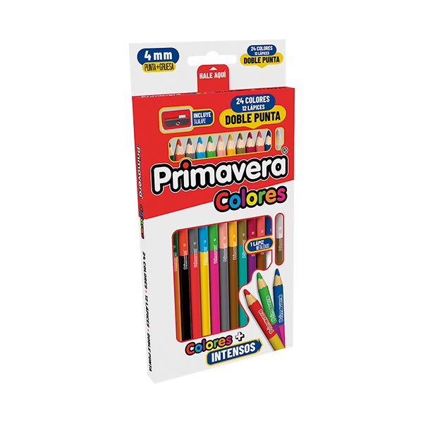 Una genial caja de 24 Colores y 12 lápices de Primavera, los cuales se caracterizan por su gran calidad y duración. Cuentan con un cuerpo redondo, un trazo más suave gracias a su punta más gruesa de 4 milímetros y colores más vibrantes para que tus dibujos y tareas sean insuperables, la caja trae un práctico sacapuntas que garantiza una mayor duración de cada lápiz de color, sin olvidar que también se incluyen 2 colores metalizados que te sorprenderán. No pierdas la oportunidad de tener estos geniales Colores, 100% originales de Primavera.
