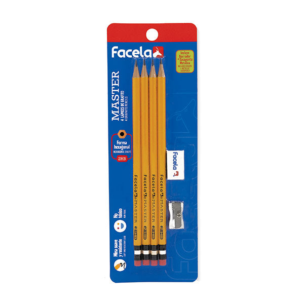 Este práctico set de Facela incluye 4 lápices de grafito hexagonal, un borrador y un tajador, presentado en un conveniente blíster. Ideal para uso escolar o profesional, asegura precisión, comodidad y funcionalidad. ¡Perfecto para llevar todo lo esencial en un solo kit!