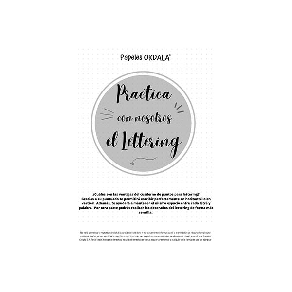 "Domina el Lettering con nuestra Cartilla de Hojas Punteadas. Practica de forma creativa la técnica para dibujar letras a mano alzada. Incluye 10 hojas con ejercicios para refinar tu trazo, crear estilos de letras, experimentar con colores y dominar plumones y marcadores. ¡Destaca en el lettering con esta guía de Okdala! ¡Compra Ahora!"