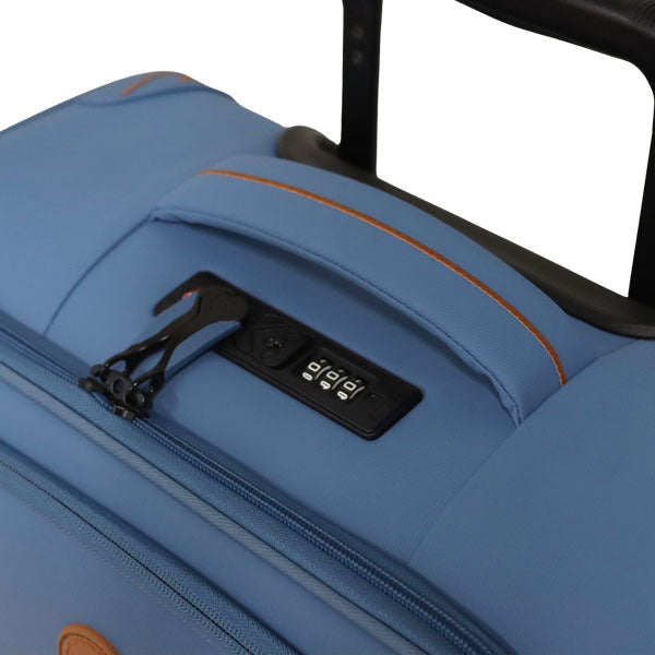 Maleta suave Verage 18" color celeste, liviana y resistente. Perfecta para viajes cortos, con compartimentos prácticos que facilitan la organización. Diseño moderno y cómodo para transportar con facilidad.