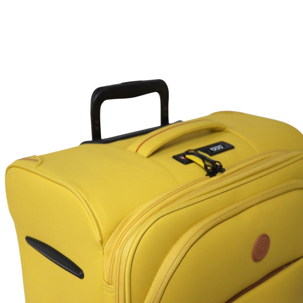 Maleta suave de 24" color amarilla marca Verage. Ligera, resistente y con diseño vibrante, ideal para viajes de varios días. Incluye ruedas giratorias, asa telescópica y múltiples compartimentos para organizar tu equipaje con facilidad.