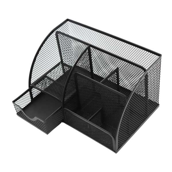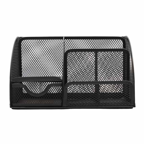 "Optimiza tu espacio de trabajo con nuestro organizador de escritorio de malla en color negro. Con varios compartimientos, este versátil accesorio es ideal para la oficina, hogar o aula. Su diseño duradero y funcional te permite mantener tus suministros organizados de manera eficiente. Mantén la productividad y el orden con este práctico organizador."