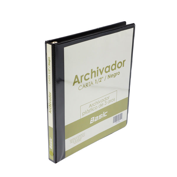 Este portafolio de la marca Basic cuenta con 3 aros y mide 1/2". De color negro, es ideal para organizar y almacenar documentos de manera eficiente. Perfecto para el uso en oficinas, escuelas o en casa, combinando funcionalidad y estilo en un solo producto.