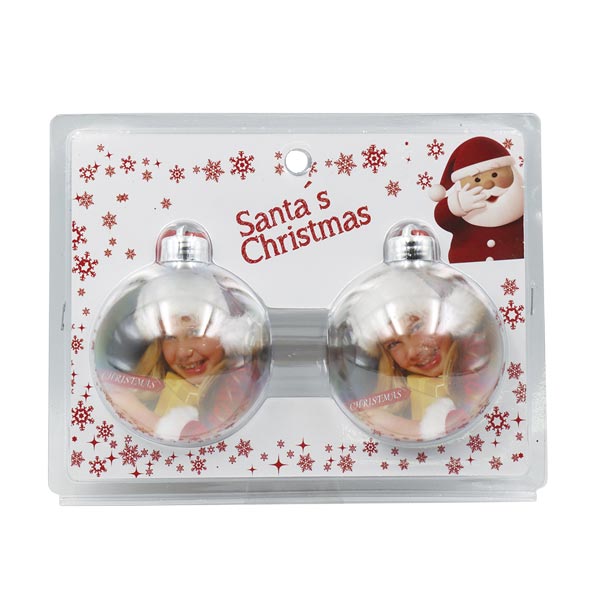 "Este set de 2 esferas navideñas presenta un encantador diseño con fotografía en su interior. Cada esfera viene con tapa y cuerda para colgar, lo que las hace fáciles de colocar en tu árbol de Navidad. Con un tamaño de 8cm, añadirán un toque personalizado a tu decoración navideña."