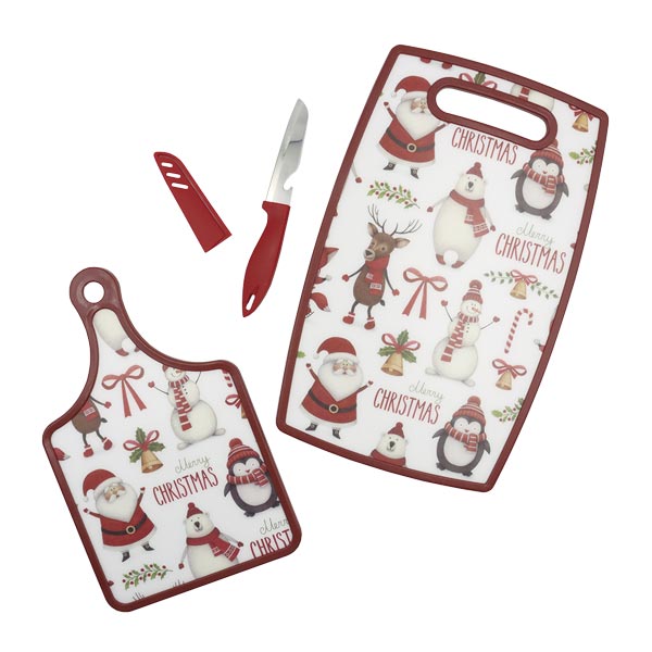 Este set de tablas de cortar plásticas es perfecto para tu fiesta temática de Navidad. Con tres tablas de cortar de diferentes tamaños, son ideales para preparar tus alimentos mientras añades un toque festivo a tu cocina. Su diseño navideño las hace destacar como una decoración encantadora para tu encimera. Además, su material plástico las hace fáciles de limpiar y mantener. ¡Prepara tus deliciosos platos navideños con estilo con este set de tablas de cortar!