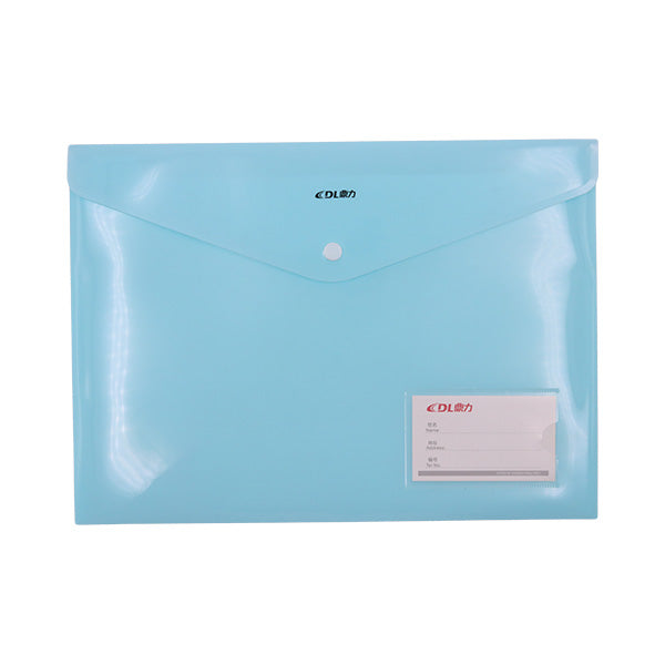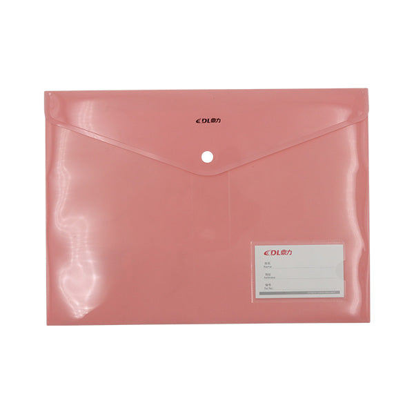 "Sobre plástico horizontal con botón en tonos pastel y colores surtidos. Ideal para organizar y proteger documentos con estilo. Perfecto para la oficina, la escuela o el hogar. Nota: el producto es surtido y puede variar en color."
