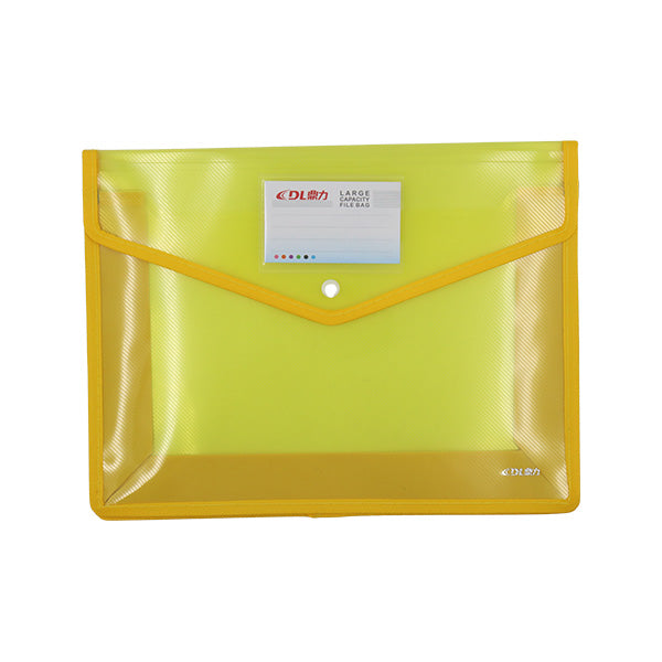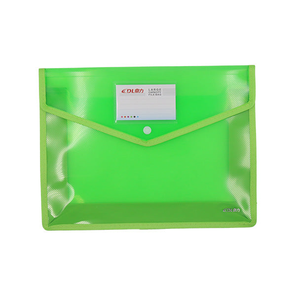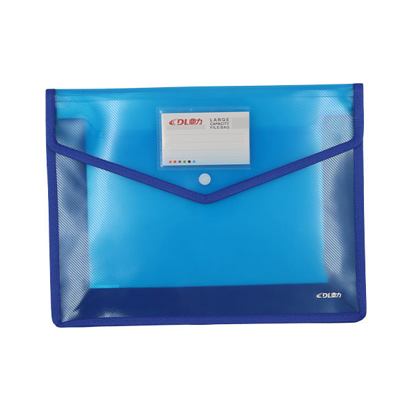 Sobre plástico horizontal con botón en colores surtidos. Ideal para organizar y proteger documentos. Perfecto para la oficina, la escuela o el hogar. Nota: el producto es surtido y puede variar en color."