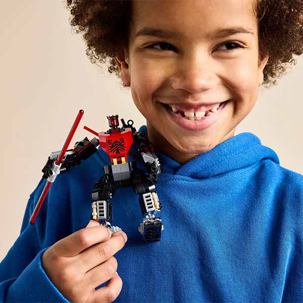 Set LEGO® Star Wars™ Darth Maul Mech (75411) para niños desde 6 años. Incluye mech articulado con cabina abatible, sable de luz doble y droide sonda acoplable. Inspirado en The Clone Wars™, ideal para juego y exhibición. Perfecto para fans del Lado Oscuro.