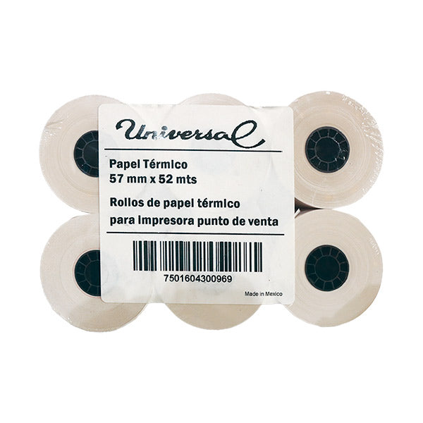 Rollo Térmico,medidas 2 1/4 x 52 metros, presentación paquete con 6 unidades.