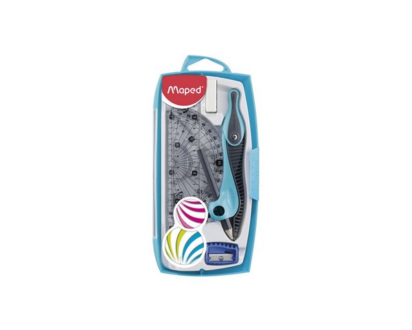 Que no te falte este set básico en tus útiles escolares. Este juego de geometría incluye compás con adaptador, 1 sacapuntas, 1 gomas, 1 lápiz, 1 regla, 2 escuadras y 1 transportador.0.