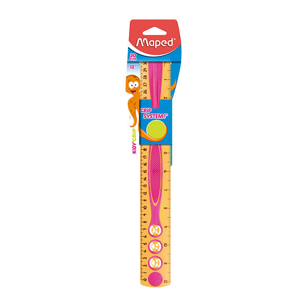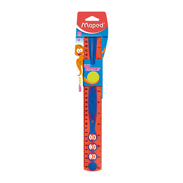Regla antideslizante y con concepto lúdico de 30 cm. Doble graduación también en pulgadas Diseñado para aprender. Graduaciones fáciles de leer. Hecho de 63% de plástico reciclado..