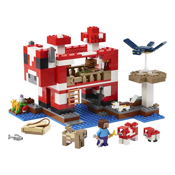 El juguete LEGO® Minecraft® La Casa-Champiñaca (21270) es perfecto para jugadores de Minecraft y peques que disfrutan construyendo casas, cuidando de los animales… ¡y rechazando algún que otro ataque aéreo! Este atractivo juego es un excelente regalo inspirado en Minecraft para niñas y niños a partir de 8 años. Ambientado en la Isla Champiñón, este juguete LEGO Minecraft incluye al popular Steve, una Champiñaca roja, una Champiñaca roja bebé, una Champiñaca marrón, un gato tricolor y al fantasma volador hostil. El juego cuenta con infinidad de elementos que aparecen en el videojuego, como una granjita con trigo, champiñones y una planta odre que crece junto a un compostador. Trae una caña de pescar, bacalao, una azada, una espada de Inframundita, un cuenco, un barco con remos, un cofre, un horno, una mesa de trabajo, una estantería, pan, una cama y más accesorios.
