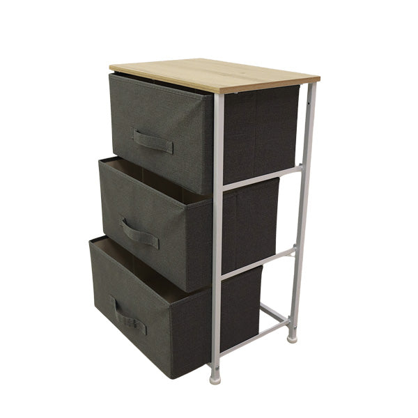 Este mueble con 3 gavetas es una opción ideal para organizar su dormitorio, hogar u oficina. Está fabricado con una estructura de metal y tela, lo que lo hace duradero y resistente. Sus medidas de 45x30x73 cm lo hacen compacto y adecuado para espacios más pequeños. Las gavetas proporcionan un espacio adicional de almacenamiento donde puede guardar ropa, documentos, artículos de papelería u otros objetos personales. Además, su diseño simple y funcional se adapta a diferentes estilos de decoración y le ayuda a mantener sus cosas organizadas y al alcance de la mano.