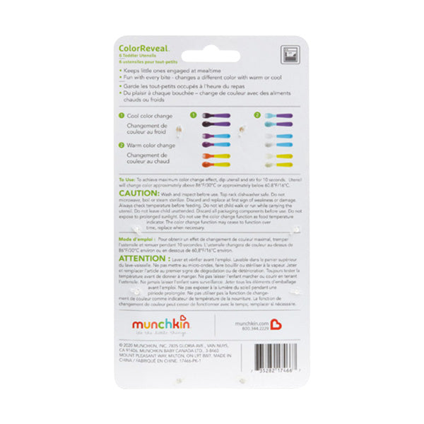 Juego de 6 divertidos utensilios que cambian de color para niños. El tamaño ergonómico y adecuado para niños pequeños fomenta la autoalimentación. Las puntas cambian de color mágicamente, dependiendo de la temperatura de los alimentos. Para lograr el máximo efecto de cambio de color, sumérjalo en la comida y revuelva durante diez segundos. Incluye 3 tenedores y 3 cucharas. Sin BPA, apto para lavavajillas en la rejilla superior. Ideal para niños y niñas de 12 meses en adelante.