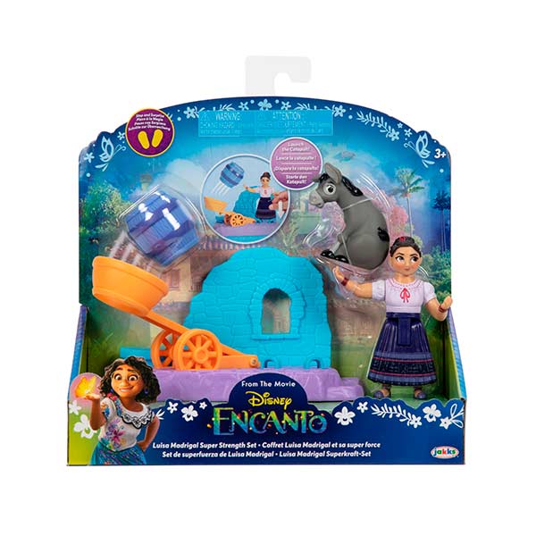 "¡Únete a Luisa Madrigal en una emocionante aventura con su juego de súper fuerza! Este conjunto incluye a Luisa, un valiente burro, un barril y un lanzador de catapulta. Luisa demuestra su asombrosa fuerza al cargar el barril en el lanzador y enviarlo volando al aire con un simple paso. ¡Prepárate para sorprenderte y disfrutar de horas de diversión lanzando barriles al cielo! Este juego compacto es perfecto para llevar contigo a donde quiera que vayas. Luisa mide 3 pulgadas de alto y es totalmente articulada para posar y jugar. Adecuado para niños a partir de 3 años."