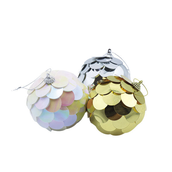 Caja de esferas 3 piezas con lentejuelas surtida 8cm