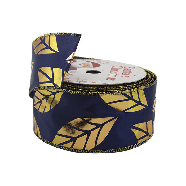 Estas cintas son perfectas para manualidades, hacer coronas, guirnaldas, lazos y decorar el árbol de Navidad. Aptas para uso en exteriores e interiores, cuentan con un diseño solid de hojas en color dorado con azul. Tamaño: 9 metros. Añade un toque festivo y elegante a tus proyectos decorativos navideños.