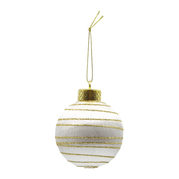 "Decora tu árbol de Navidad con encanto usando esta esfera blanco con detalles dorados de 9.5 cm. Cada esfera incluye una tapa y una cuerda para una fácil colocación en árboles de tamaño estándar. Estas esferas son ligeras y no ejercen presión sobre las ramas del árbol, manteniéndolas intactas. Su diseño blanco con detalles de color dorado aporta un toque festivo y elegante a tu decoración navideña, creando un ambiente acogedor en tu hogar."