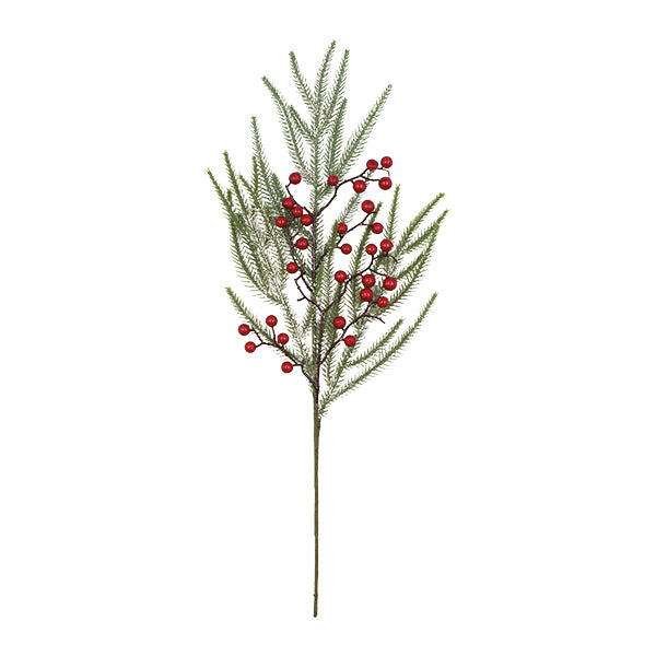 Excelente para decorar coronas, guirnaldas y árboles en navidad, gran toque final para regalos, se puede usar en arreglos florales y muchas otras manualidades. Diseño Spray con bayas. Color verde. Tamaño 60cm