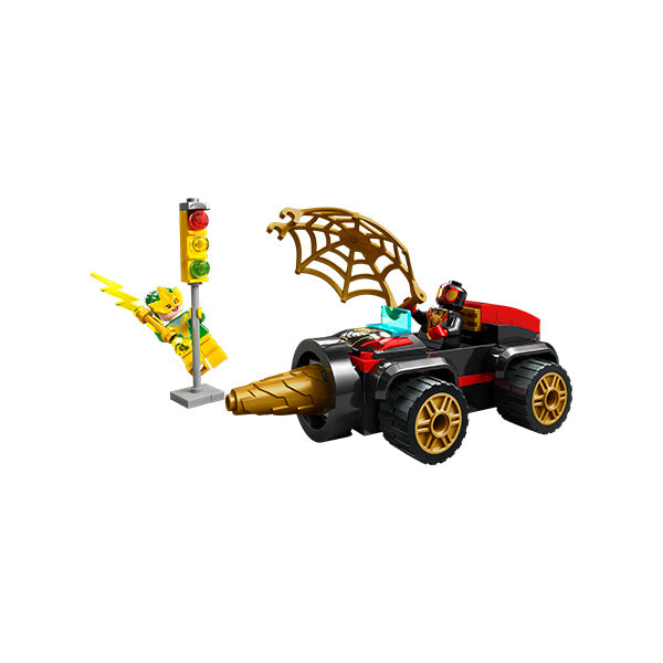 El set incluye un auto de Spider-Man para empujar con una sección frontal giratoria, junto con minifiguras de Miles “Spin” Morales y Electro. Con un chasis para principiantes y sencillas instrucciones visuales, los niños pueden empezar a construir y jugar fácilmente.