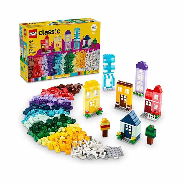 El set LEGO Classic Casas Creativas (11035) es perfecto para niños y niñas a partir de 4 años. Con este set, pueden construir, combinar y personalizar 6 casas coloridas con ventanas, puertas y accesorios. El kit viene con instrucciones para construir los 6 modelos iniciales, pero la diversión creativa no se detiene ahí. Los niños pueden agregar bricks para personalizar aún más las casas, cambiando puertas, ventanas, techos y jardines. El set incluye 8 ideas de construcción adicionales para inspirar la creatividad, y los niños también pueden construir una casa LEGO gigante con las piezas del kit. Las instrucciones están disponibles en la app LEGO Builder para una experiencia de construcción interactiva. Con LEGO Classic, los niños y los padres pueden disfrutar de momentos de construcción y juego juntos.