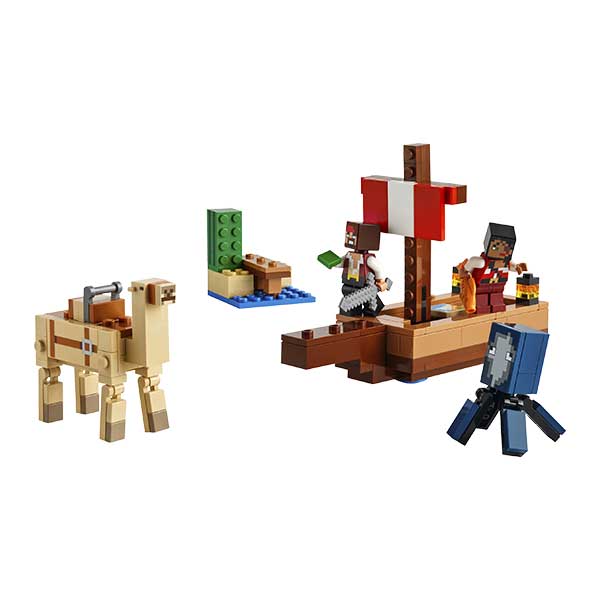 El set Viaje en el Barco Pirata (21259) es un juguete LEGO® Minecraft® de aventuras que te permite jugar solo con él o combinarlo con otros sets (a la venta por separado) para ampliar la experiencia de juego. Este barco pirata de juguete es un versátil regalo inspirado en el videojuego para jugadores de Minecraft o niños y niñas a partir de 8 años que se divierten jugando con barcos y construyendo. Este set LEGO Minecraft de aventuras piratas incluye una embarcación construible, así como un calamar, un camello, 2 figuras de piratas y accesorios. Con piratas, un barco y, por primera vez, un camello LEGO Minecraft adulto, este set LEGO especialmente atraerá a los fans de Minecraft. En la montura para dos del camello pueden subirse ambos piratas.