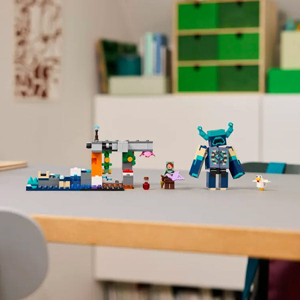 Set LEGO® Minecraft® Encuentro con el Custodio (21274) para niños desde 7 años. Incluye cueva frondosa con diamantes y amatistas, Guardabosques Silencioso, gallina y Custodio articulado. Con funciones de explosión y caída de rocas. Perfecto para recrear aventuras del videojuego.