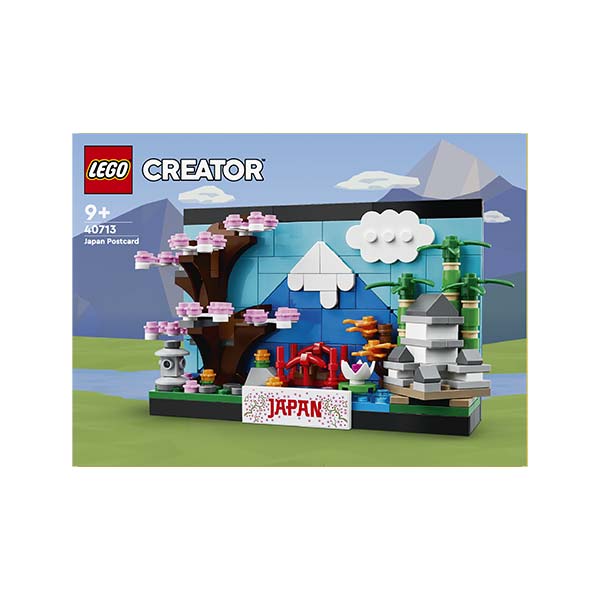 Viaja a Japón desde casa con la Postal de Japón LEGO® coleccionable (40713), un regalo encantador para niños a partir de 9 años y para entusiastas del país del sol naciente. Este modelo en 3D captura la belleza del monte Fuji rodeado de cerezos en flor, complementado con un puente rojo y una estructura inspirada en el Castillo de Himeji.