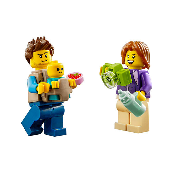 Dirígete a unas divertidas vacaciones a bordo de la inconfundible Casa Rodante de Vacaciones LEGO® City. Conduce hasta tu destino favorito, encuentra un buen lugar para acampar y saca los utensilios que necesitas en el exterior. Ayuda a dar el biberón al bebé y usa el portabebés mientras preparas algo de comer en la cocineta. Disfruta de una deliciosa cena campestre rodeado de naturaleza, acuesta al bebé y decide cuál será tu próxima parada. ¡Mañana será otro emocionante día!