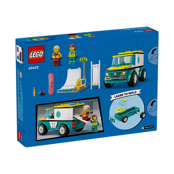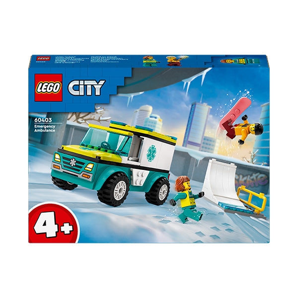 60403 Ambulancia de Emergencias y Chico con Snowboard (79 piezas)