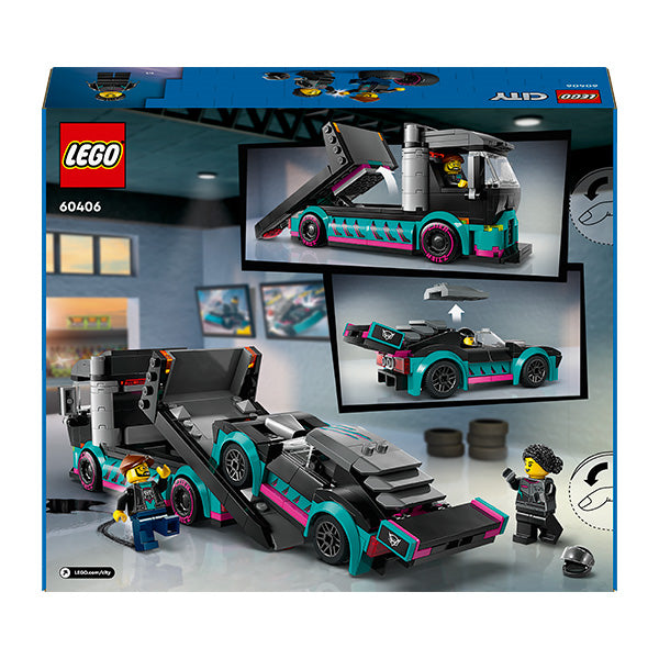 60406 Auto de Carreras y Camión de Transporte (328 piezas)