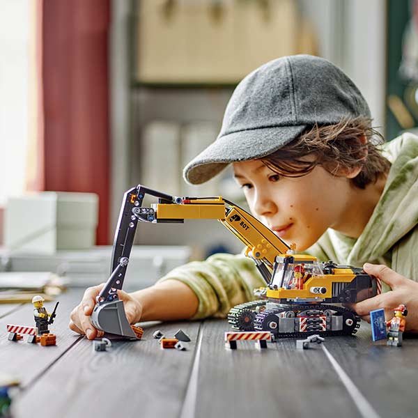Sorprende a tu joven constructor con el juguete LEGO® City Excavadora de Obra Amarilla (60420) para mayores de 8 años. Este juguete es como una excavadora de verdad, con orejas de gran agarre, un brazo versátil y una cabina que gira 360°. El conjunto también trae 2 barreras y minifiguras de un conductor, un obrero y un arquitecto para interpretar historias imaginativas. Este juego de juguetes para niños incluye una guía de construcción paso a paso impresa e instrucciones 3D en la aplicación LEGO Builder: una compañera digital con intuitivas herramientas de acercamiento y giro para que tu peque pueda visualizar los modelos desde todos los ángulos a la medida que construye.
