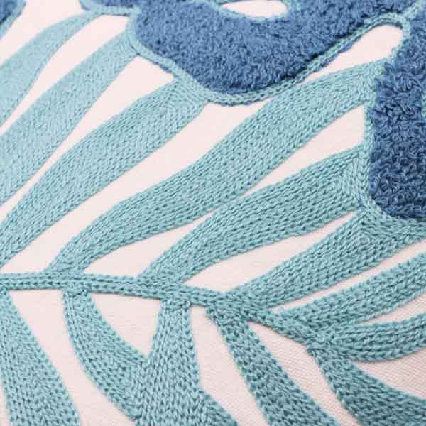 Cojín decorativo hojas azul