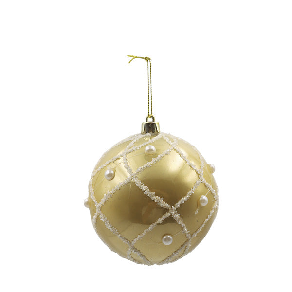"Estas esferas de Navidad son ideales para decorar tu árbol con facilidad. Vienen con tapa y cuerda para colgarlas en árboles de tamaño normal sin doblar las ramas. Su diseño con rayas y puntos en color dorado añade un toque festivo y elegante a tu decoración navideña. Tamaño: 10 cm."