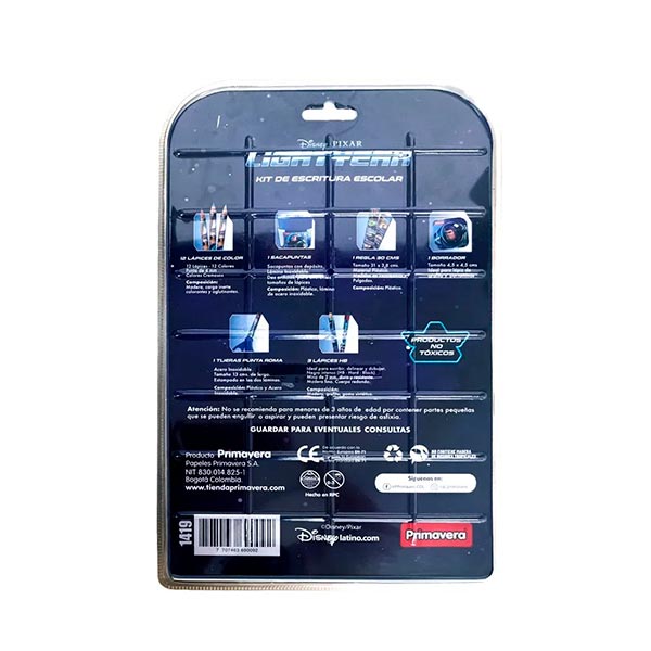 Este kit cuenta con 12 Lápices de Color con puntas de 4 mm. y colores cremosos; 1 Sacapuntas con depósito, la cual cuenta con lámina de acero inoxidable y dos orificios para diferentes tamaños de lápices; cuenta además con 1 Regla plástica de 40 cms. con medidas en centímetros y pulgadas; 1 Borrador con un tamaño de 4,5 x 4,5 cms. ideal para lápiz de grafito y portaminas; Unas geniales Tijeras Punta Roma fabricadas en acero inoxidable, con un tamaño de 13 cms. de largo y estampadas en las dos láminas. Finalmente cuenta con 3 Lápices HB, de color negro intenso, ideales para escribir, delinear y dibujar, con una mina de 2 mm. de madera fina y resistente y cuerpo redondo.
